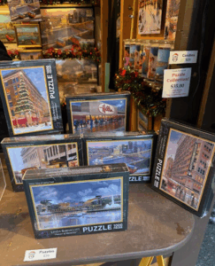 If you do make it to the market (and I hope you will!), I have many items there that are not on my website. One in particular is very popular – my puzzles! When people complain (kidding, of course!) about the 1000 pieces, I’ll often wink and say, “Well, I painted it. You can certainly piece it together!” I do have two completed, framed puzzles at the market so that folks can see the size and color. They are $35.00 each and are only sold at the market.