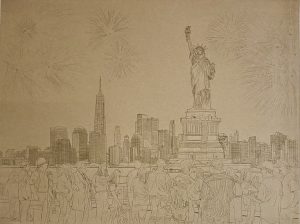 After weeks of preparation, I’ve finally finished the sketch for my 2026 project, “Our Lady of Liberty.” I’m releasing a limited edition of 250 prints celebrating our country’s 250th birthday next year. The prints themselves will be sold directly through Bethel Park Fantastic Four charities. (The group includes the Bethel Park Community Foundation, Bethel Park Education Foundation, Bethel Park Public Library, and Bethel Park Historical Society.)